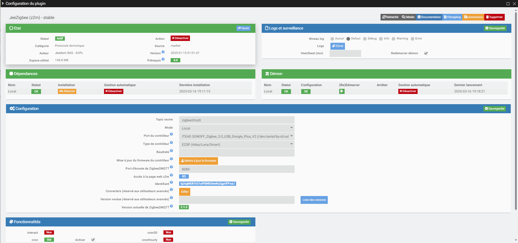 J’ai un soucis sur Jeezigbee, à chaque redémarrage de ma VM, le daemon ne démarre pas automatiquement, je suis obligé de le démarrer manuellement puis tout refonctionne jusqu’au prochain redémarrage.
