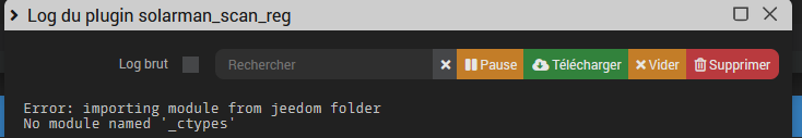 Pour l’erreur ctypes, je ne suis même pas sure que cela soit du module solarman, est-ce que ça ne viendrait pas d’un module de dépendance ? (En fouillant sur le net, j’ai vu des problèmes ressemblant pour le module udev. Après, je ne connais pas assez pour rechercher ce type d’erreur.)
