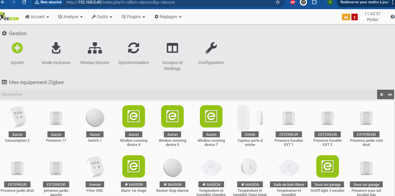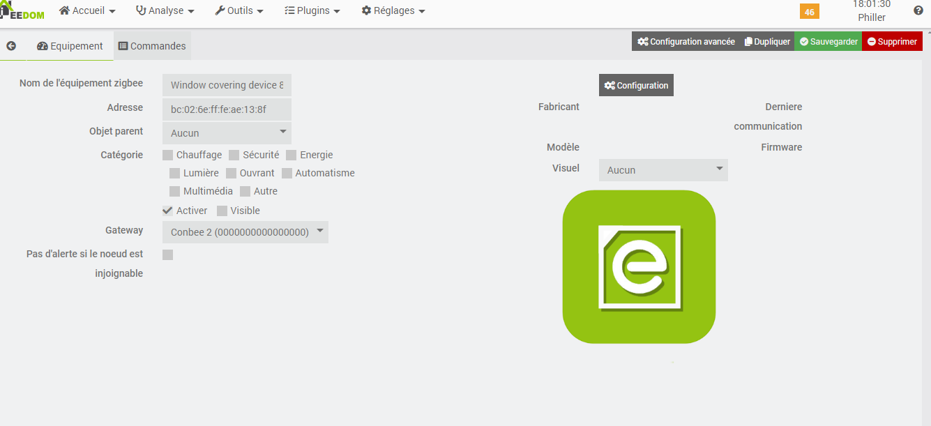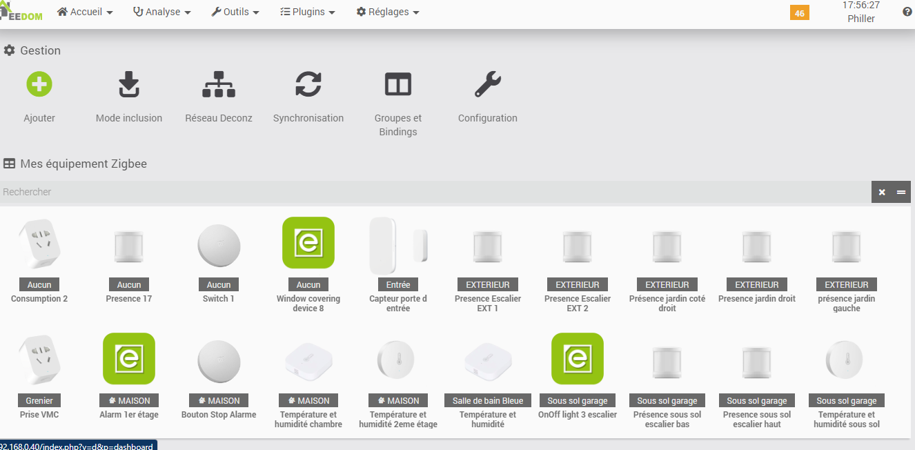 ci joint une capture d’écran obtenue sur jeedom. il est detecté par 3 icones.