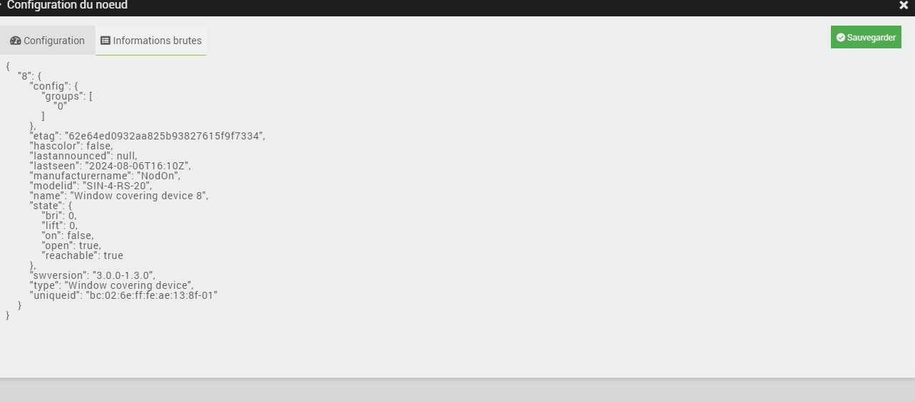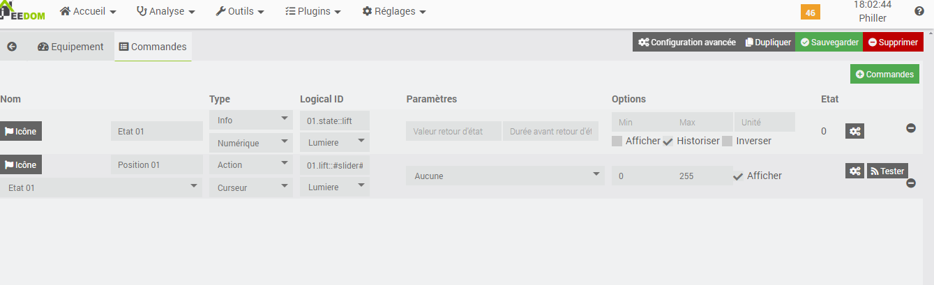 Tu aurais une capture de cette page, car ça a l’air normal, Etat pour ouvert/fermé et Position pour la position du volet. Il te manque peut être les commandes, tu as essayé de les rajouter toi même ? (En copiant un volet fonctionnel)