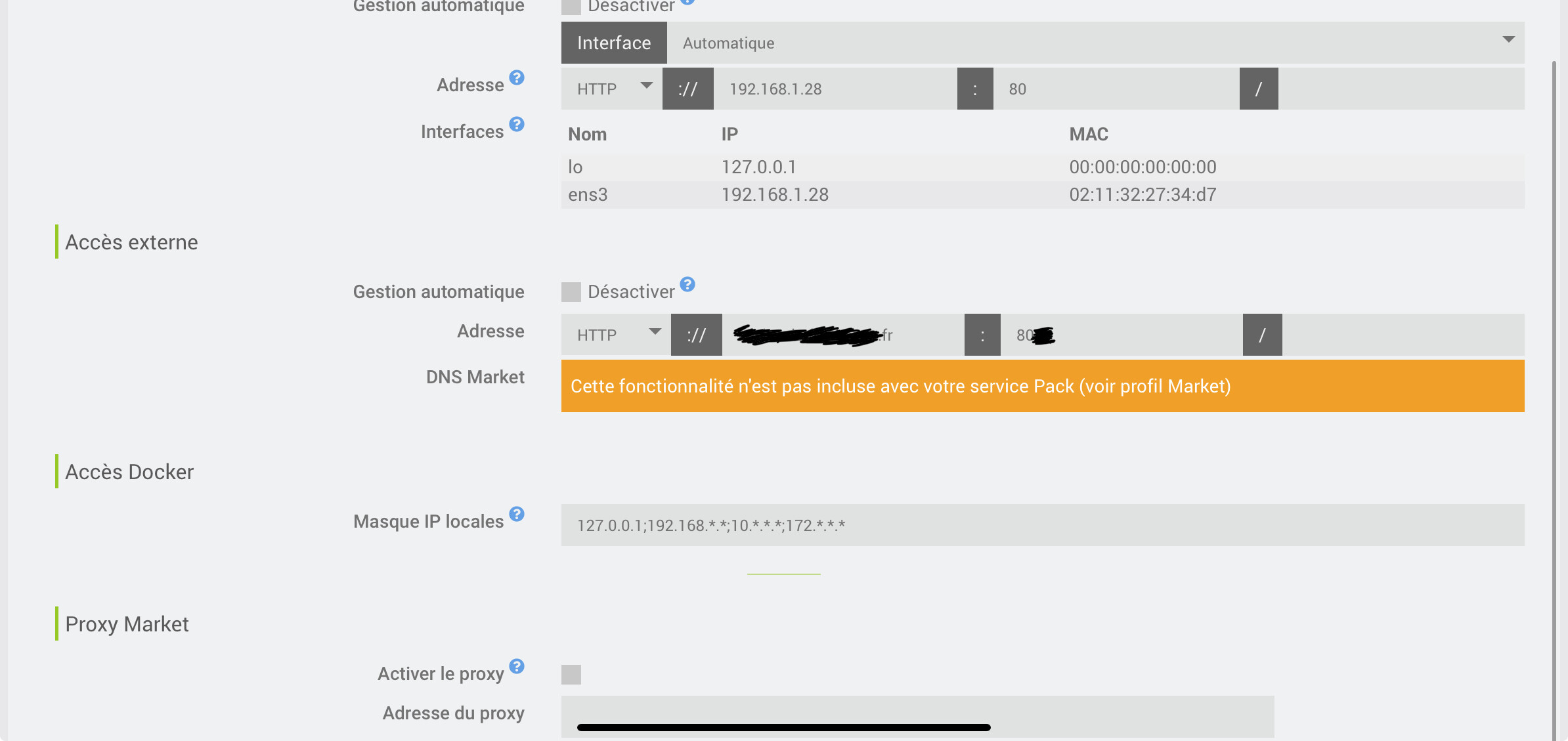 Déjà un accès extérieur en http. Et après on va parler sécurité je masque mes informations LOL