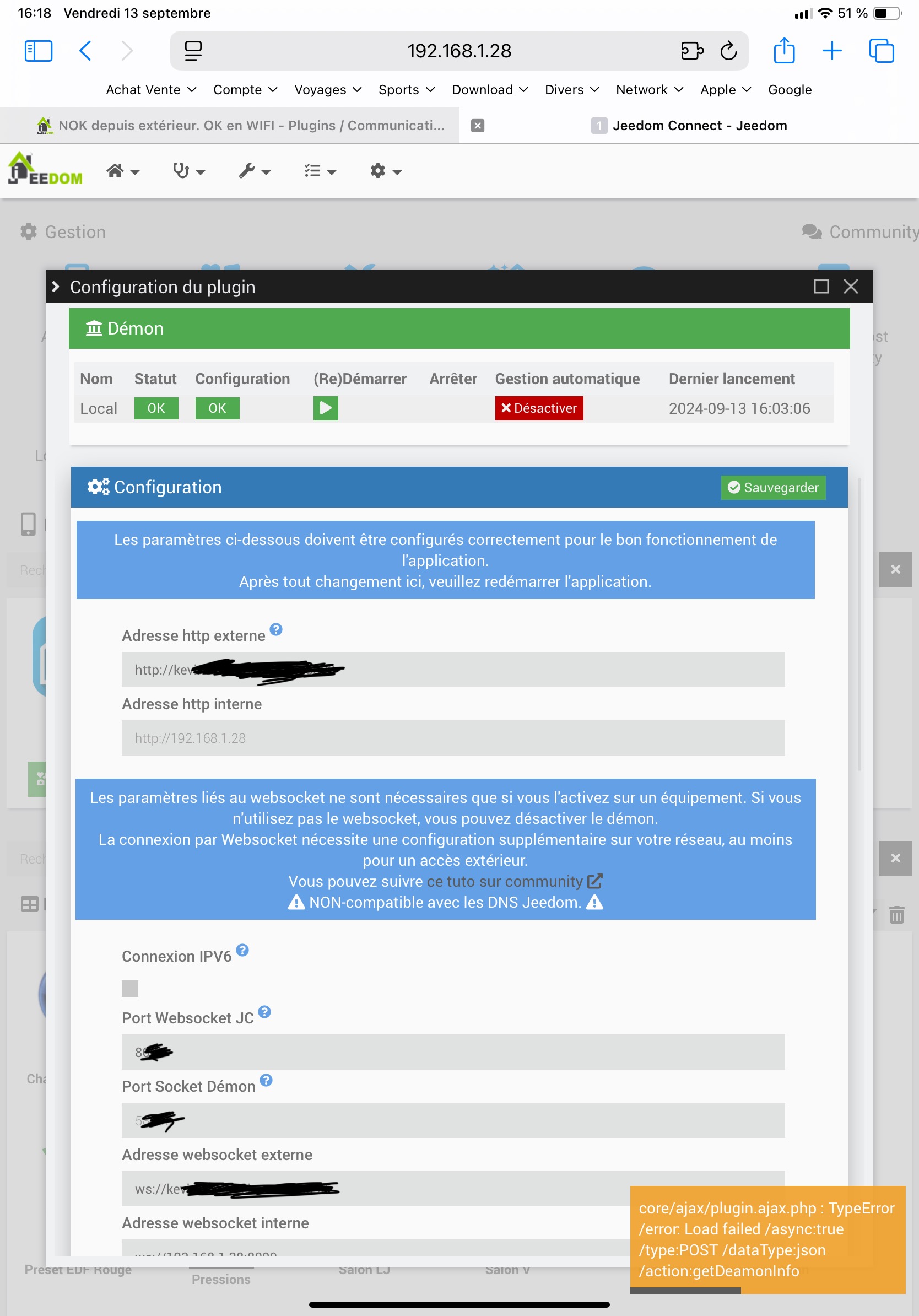 J’ai deux autres équipements qui fonctionnent parfaitement depuis l’extérieur avec la même configuration (polling) ainsi qu’une tablette locale qui est en WS.