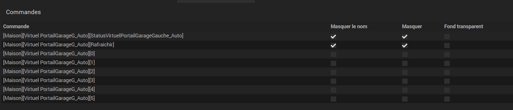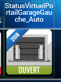 dans mon exemple, j’ai le nom de la variable du virtuel qui reste affiché en permanence (StatusVirtuelGarageGauche_Auto)