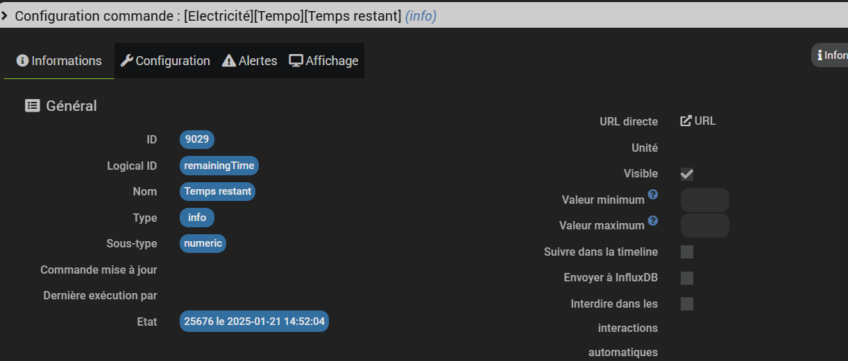 La commande info doit être de type Autre.