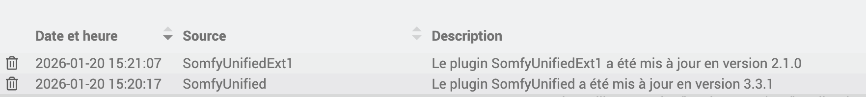 Je viens de mettre à jour le plugin somfyunified et ext1 dans leurs dernières versions disponible aujourd’hui :