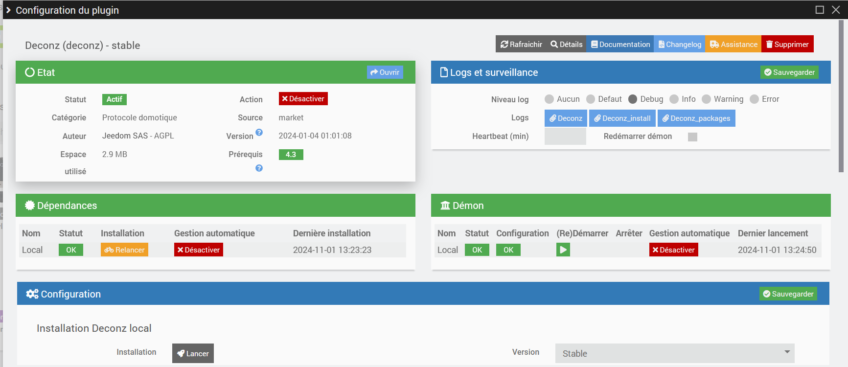 Le plugin deconz est bien fonctionnel. Le demon aussi.