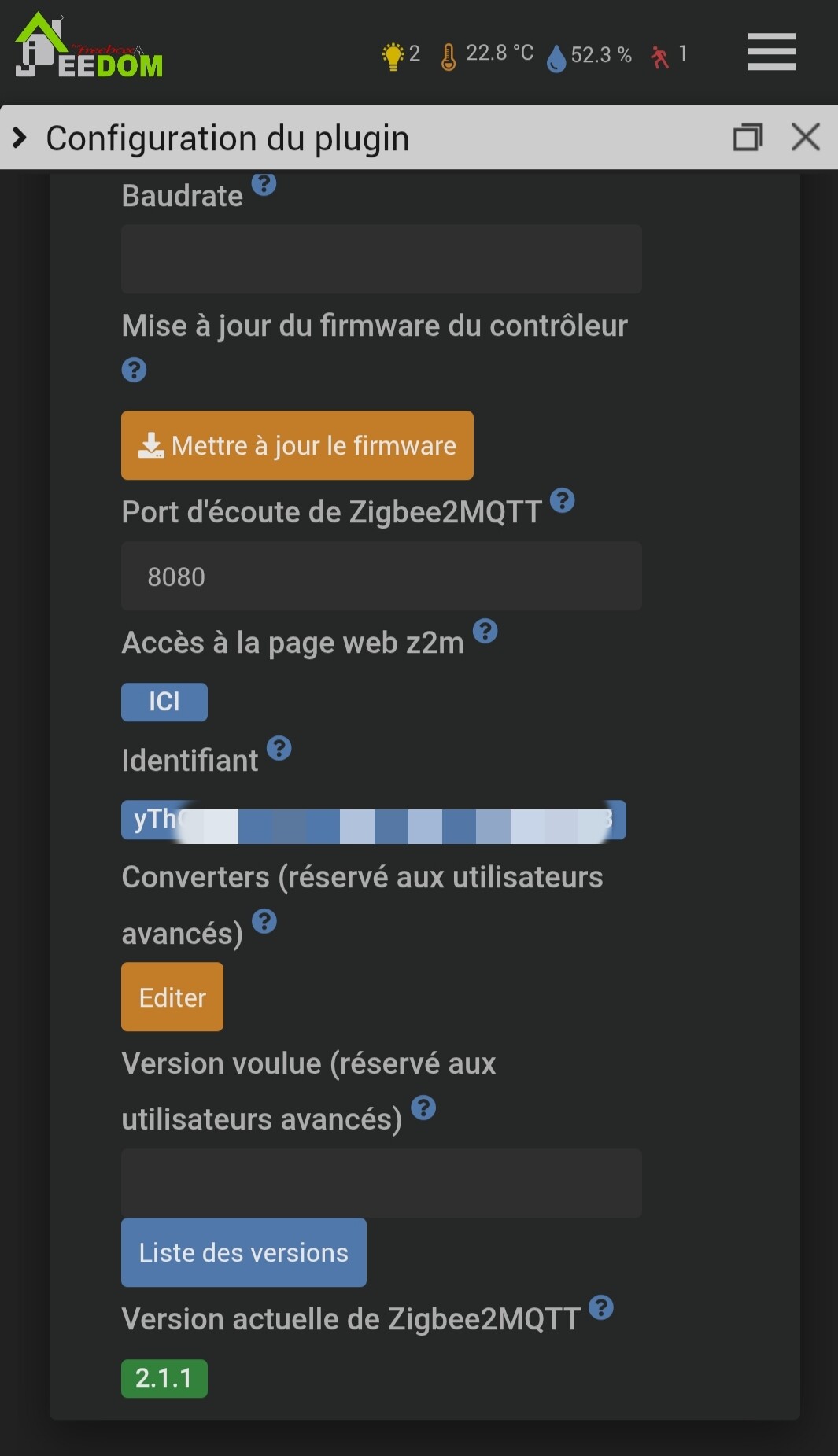 Le passage en version 2.x de Z2M ayant été compliqué pour beaucoup, j’avais forcé la version en 2.1.1