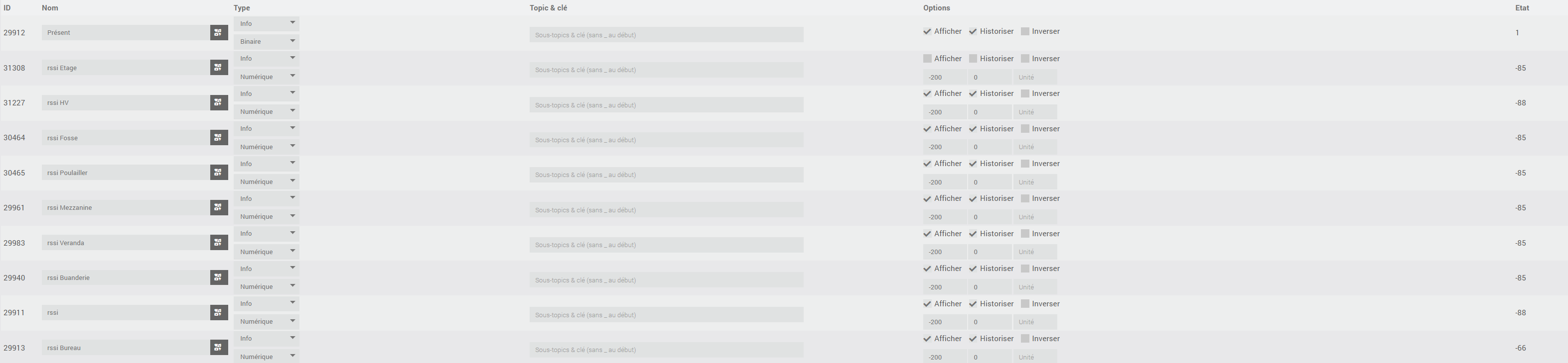 [2024-12-16 15:09:31] DEBUG : new message:{"home":{"TGW_2583":{"BTtoMQTT":{"CBC9C015B32C":{"manufacturerdata":"59000003","name":"nut","id":"CB:C9:C0:15:B3:2C","rssi":-85,"servicedatauuid":"180a","servicedata":"cbc9c015b32c","brand":"nut","model":"Smart Tracker","model_id":"NUT","type":"TRACK","cidc":false,"acts":true,"track":true,"device":"nut Tracker"}}}}}