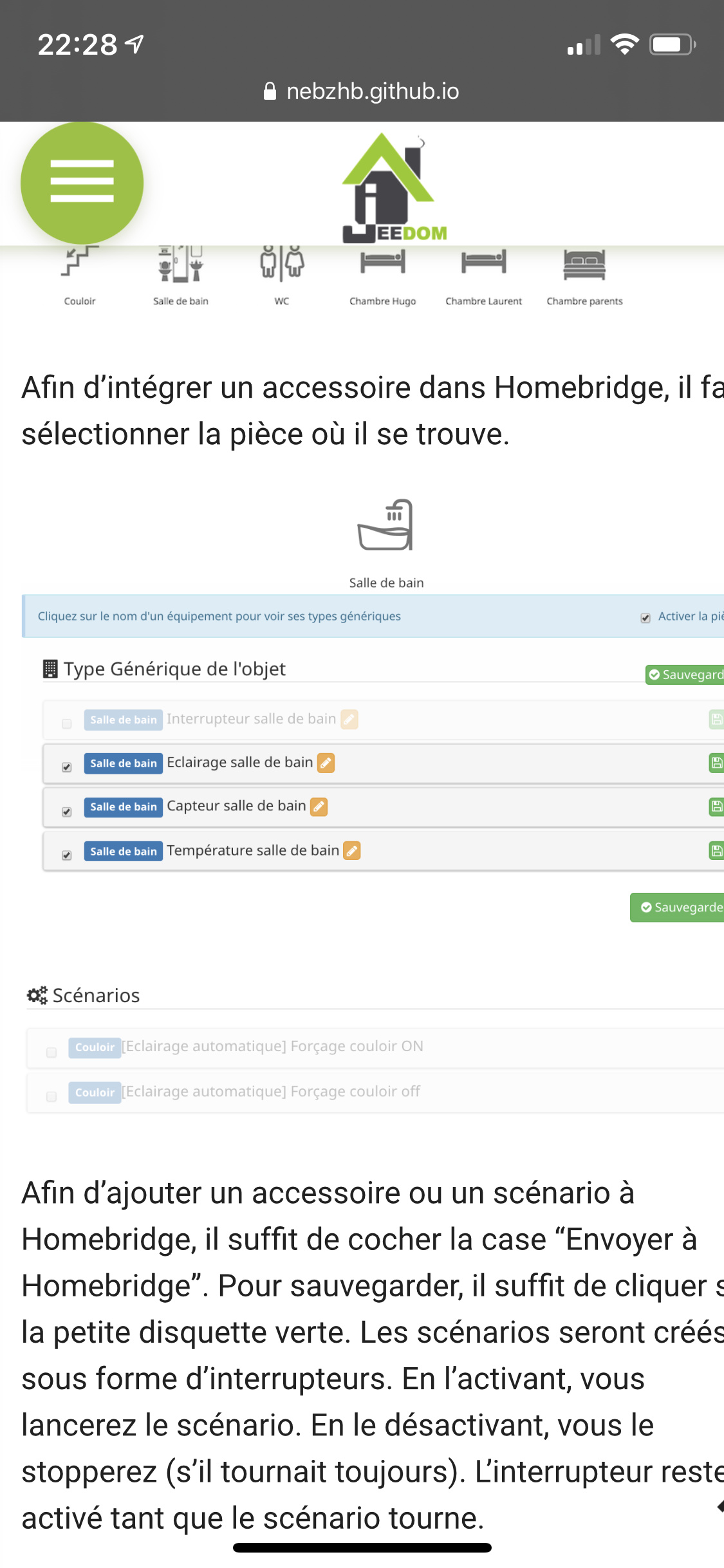 Je lis dans la partie que tu as envoyée qu’il suffit de cocher la case « Envoyer à Homebridge », juste a coté d’une capture d’écran qui ne me montre pas cette case. Et un peu plus loin dans la doc je lis ca