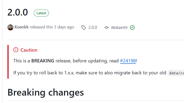 Une fois qu’on a dit ça, je suis entièrement d’accord avec fois sur le fond, appliquer une mise à jour sans lire le changelog c’est risqué, mais encore faut-il trouver le changelog de zigbee2mqtt quand l’utilisateur a « juste » une notification et qu’il clique dessus sans réfléchir.