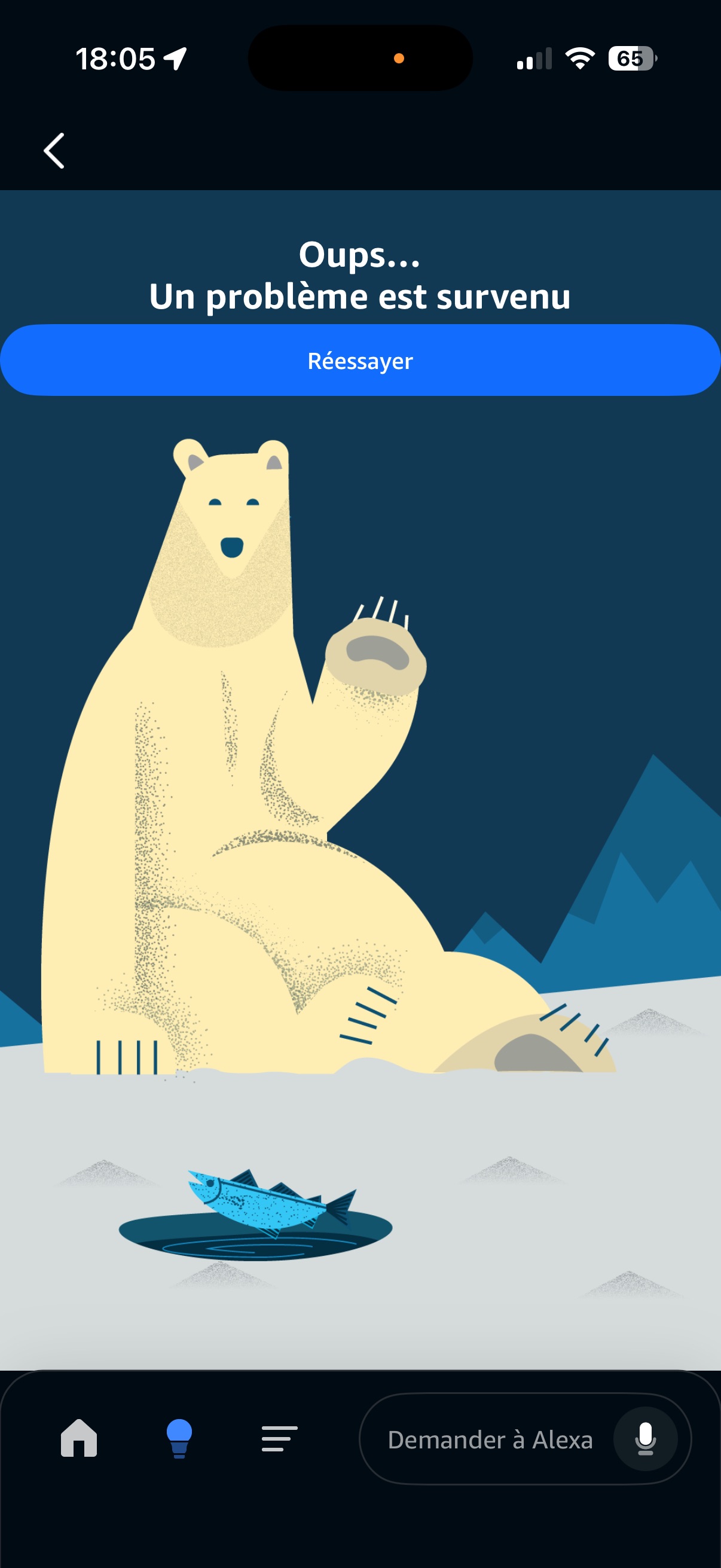 Mais lorsque j’y accède à l’équipement coté app Alexa, j’ai ce message: