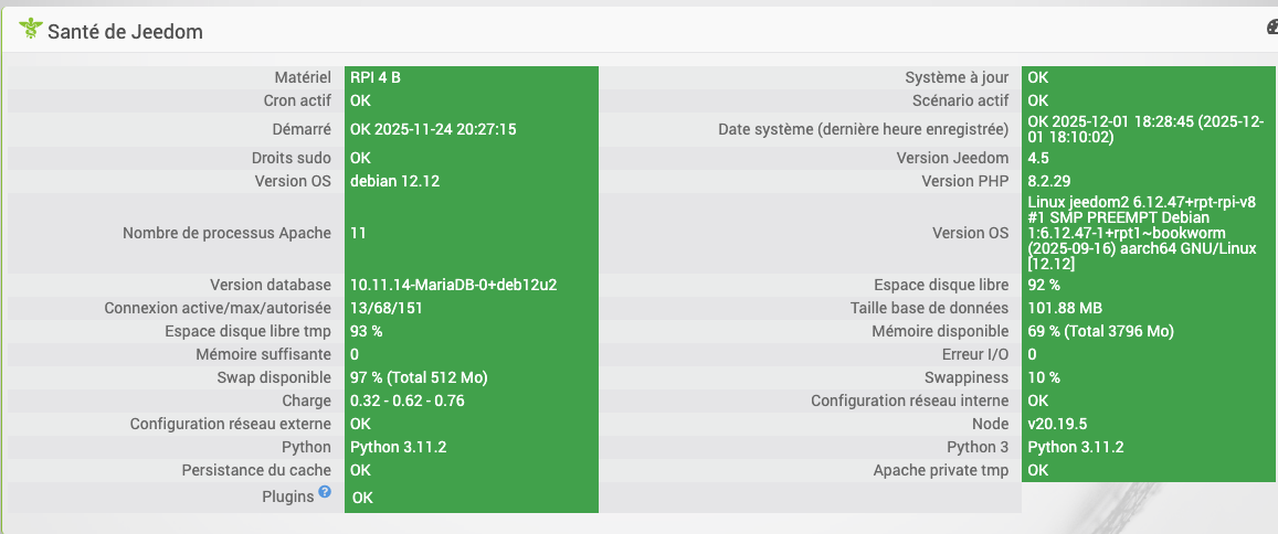 Voilà le JSON généré par le plugin, sur la partie de l’équipement incriminé: