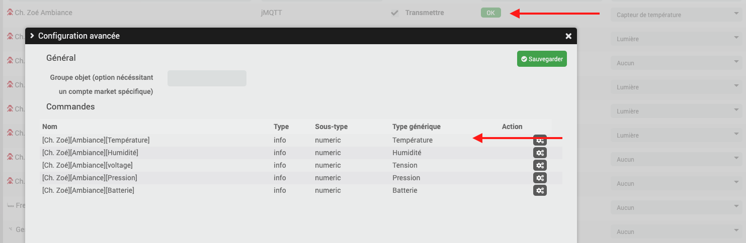 - L’équipement est bien configuré, tous les types génériques sont fixé, résultat « OK »