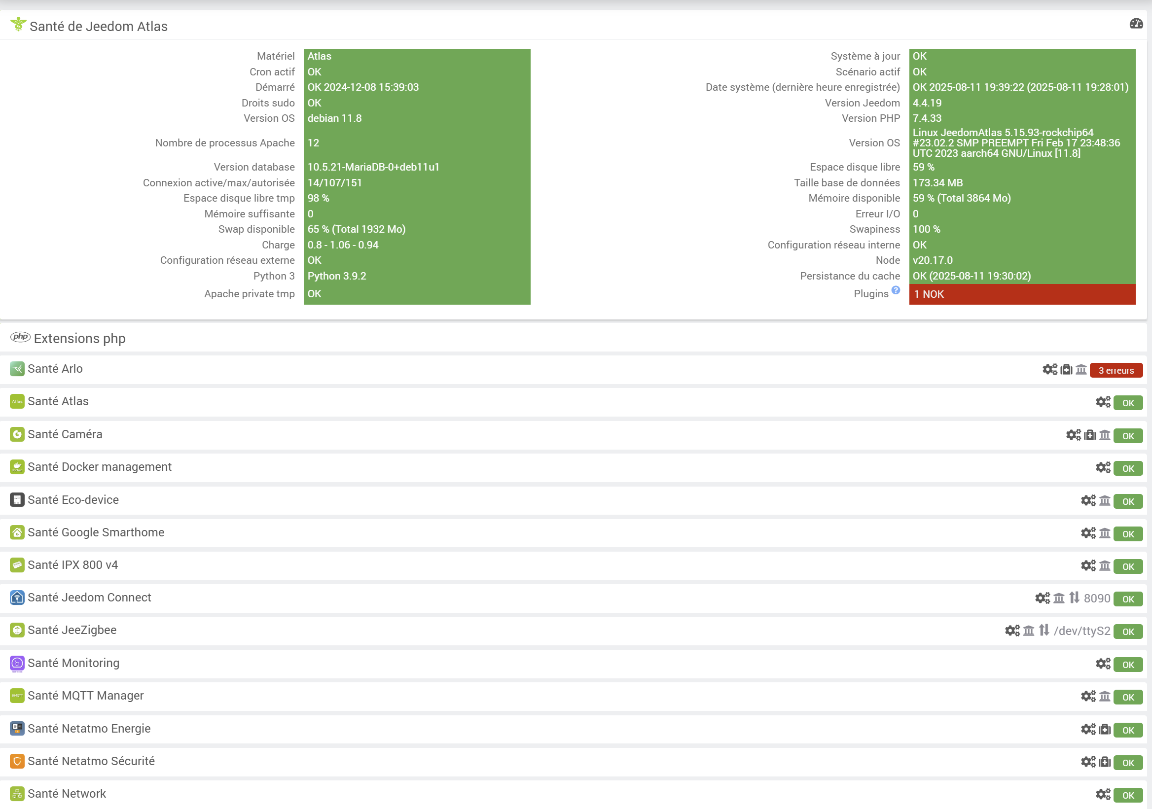 Informations Jeedom Atlas
