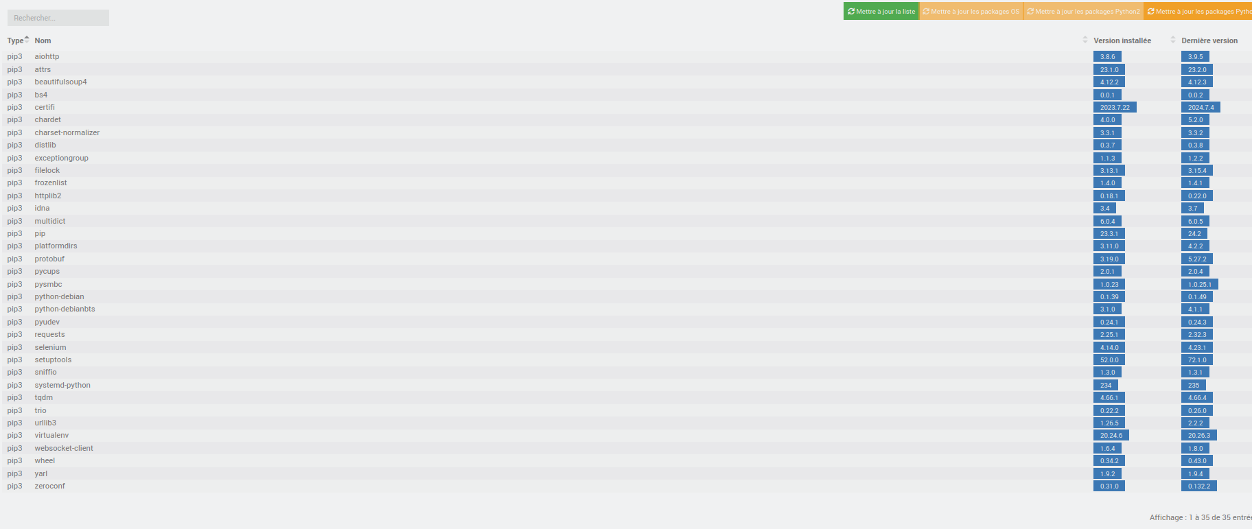 Malgré cela, j’avais quand même 26 packages indiqués comme non à jour (par exemple ta lib jeedomdaemon qui ne se met pas à jour avec apt update / upgrade).