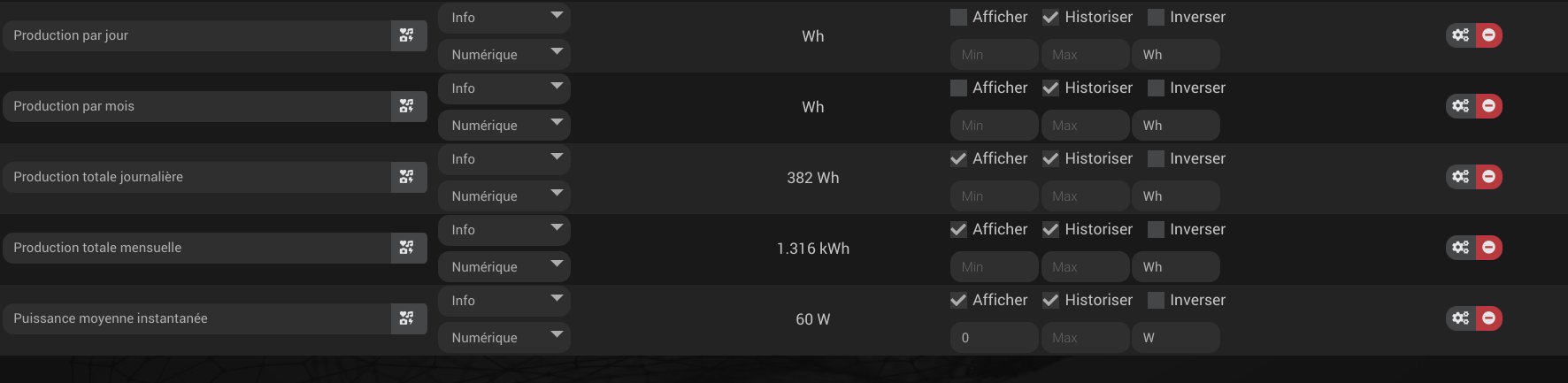 j ai également le plugin enedis (qui me permet de comparer la veille) j’ai toujours à 0,01 près la meme conso entre le lixee et le plugin enedis sauf que maintenant que mes panneaux produisent, je devrais avoir moins sur mon equipement total non ?