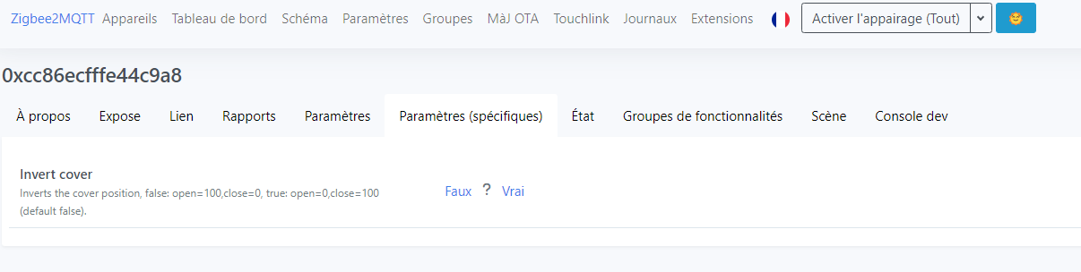 Je viens de balayer les paramètres dans zigbee2mqtt, mais je ne vois pas l’endroit ou modifier cela.