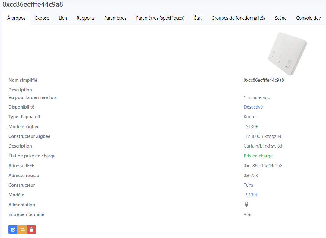 Je n’ai pas (encore) de module Zigbee pour les volets.