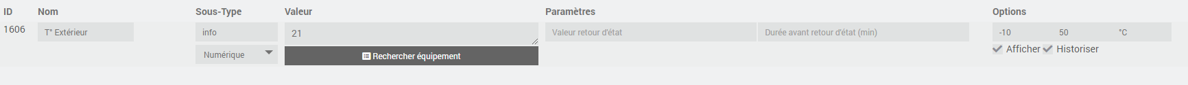 Ci-dessous un virtuel + commande info sans liaison : les autres sont désactivées.