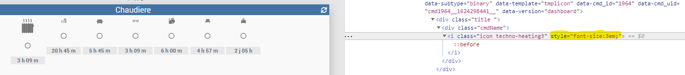 Lorsque j’avais la version 3, j’avais bidouillé un widget pour qu’il n’affiche que l’icone de la commande et en dessous un icone en fonction de la valeur. J’avais du rajouter un morceau de script pour modifier la taille de l’icone et celle du icone.