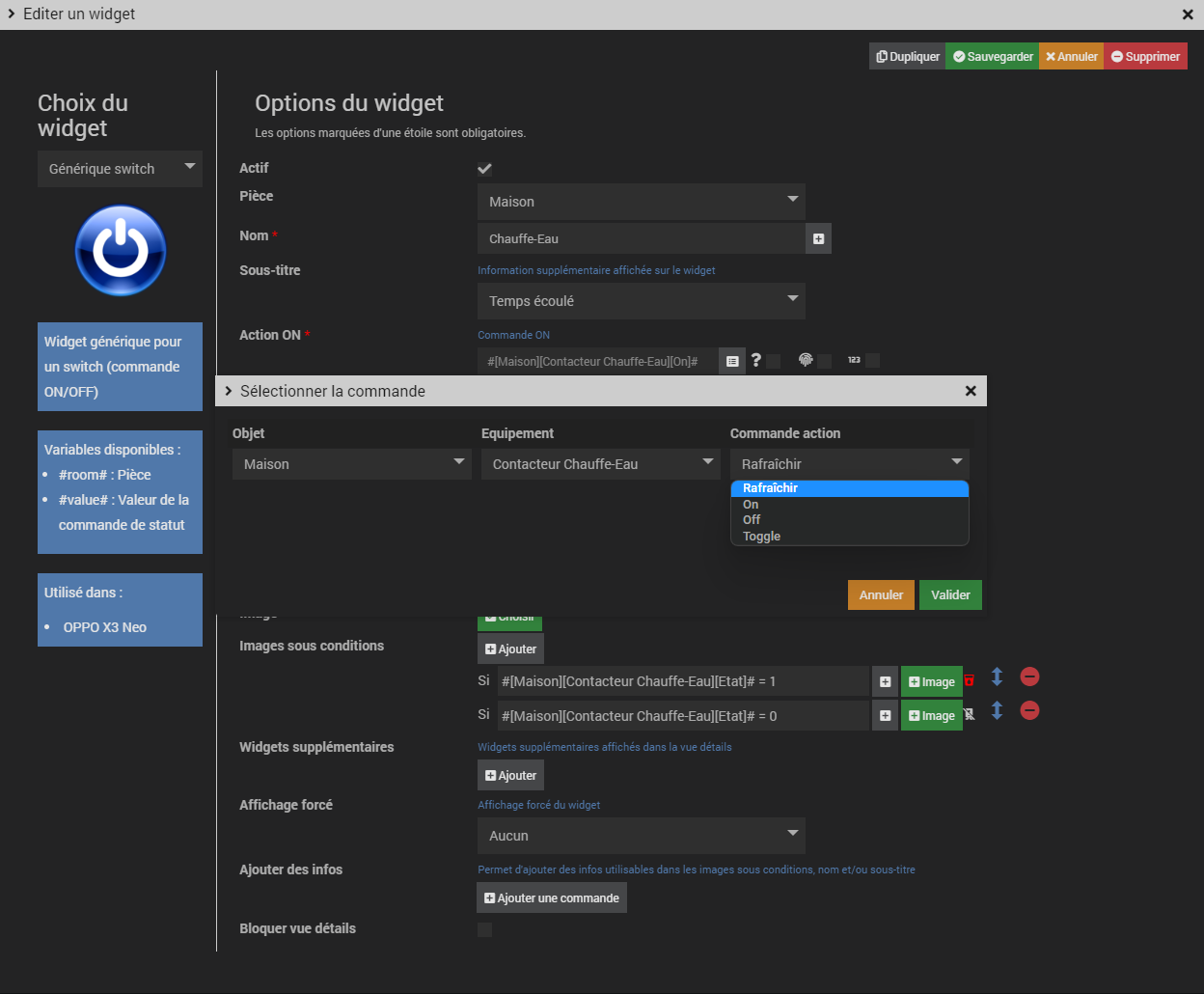 Dans ton widgets switch sur le plugin JC tu as ajouter un widget supplémentaire, donc tu crées d’abord ton widget auto et tu l’ajoute au premier on/off.