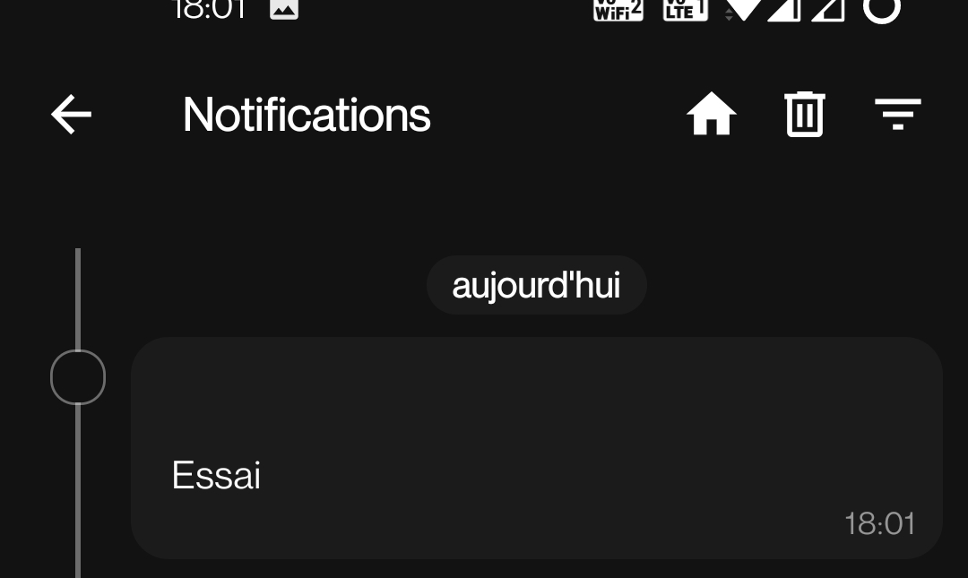 En faisant des tests sur mon widget alarme avec les trois téléphones j’avais eut quelques ratés dans les notifs qui ressemblaient à ça. Rien dans la barre d’Androïd mais bien affiché dans l’application. Tous les tel sont en thème sombre. Comme ce n’était pas récurrent comme bug je n’ai pas chercher plus loin, mais y’à peut-être quelque chose à creuser.