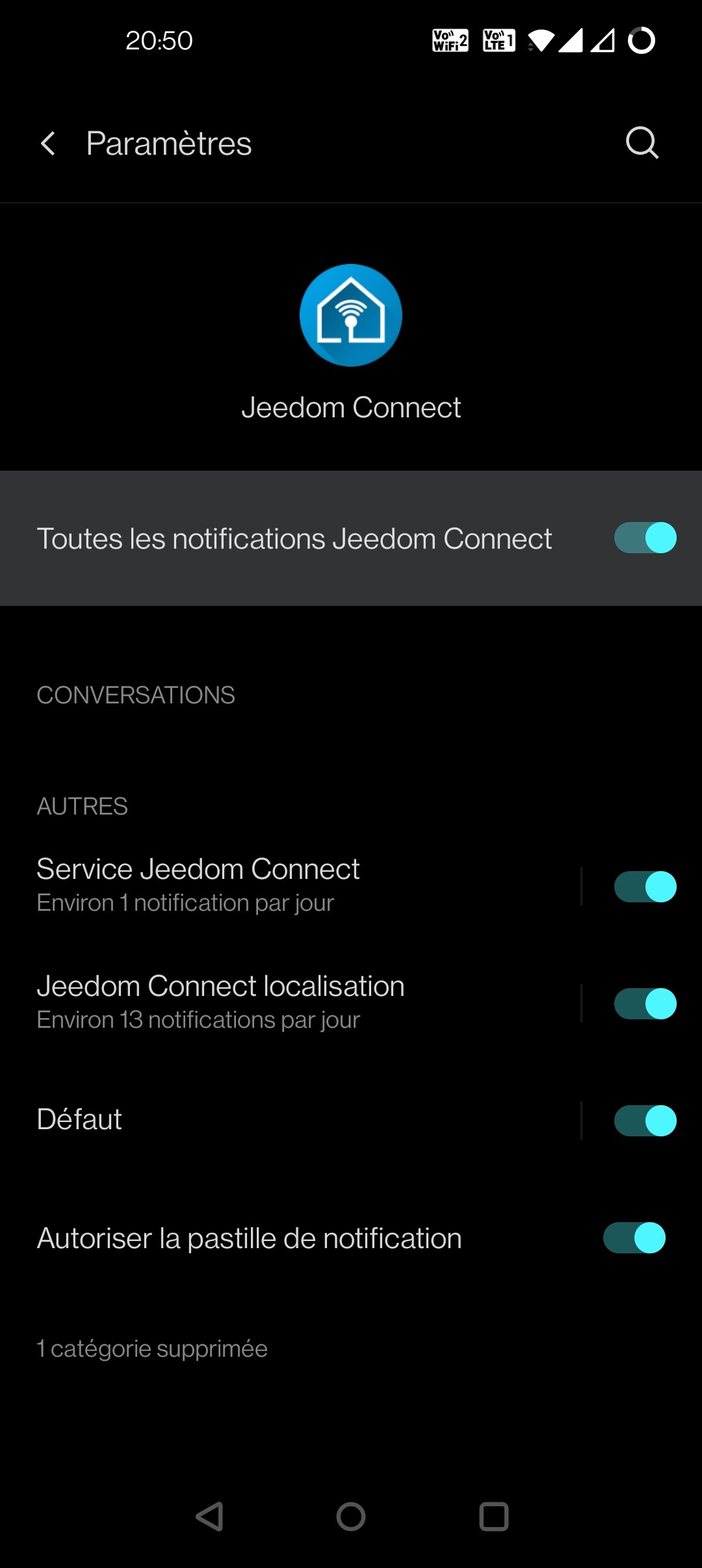 J’utilise Jeedomconnect depuis quelques temps déjà et, il me semble, depuis la dernière mise à jour de l’application Android, je n’ai plus de notifications sur Android.