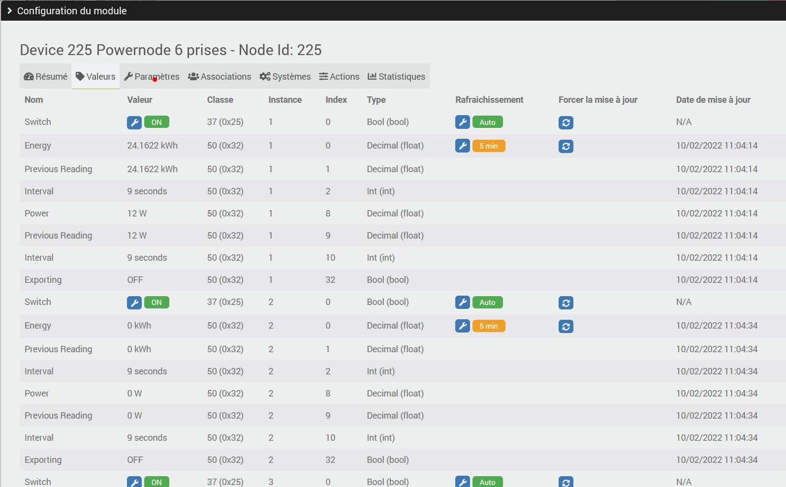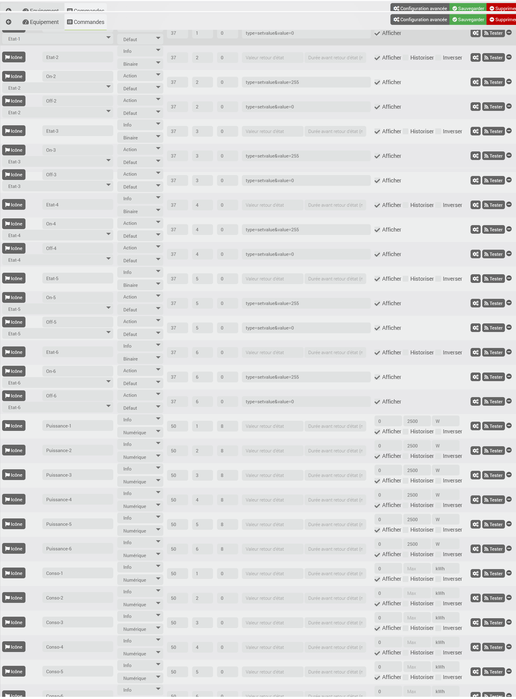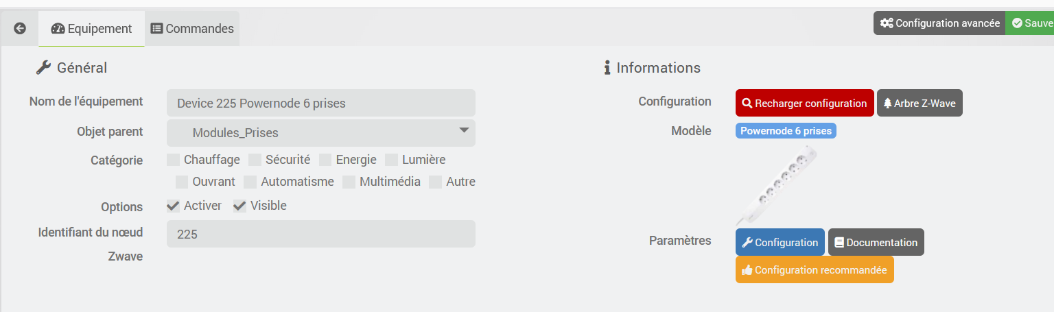 Je peux peut-être aider un peu ici. J’ai aussi cette super multiprise depuis très longtemps. Regarde le printscreen, tu y trouveras toute la config « Commande » du module Zwave et qui marche bien chez moi. Ca fait tellement longtemps que je l’ai et que je ne sais plus si c’est une config custom ou en standard dans les configurations recommandés.