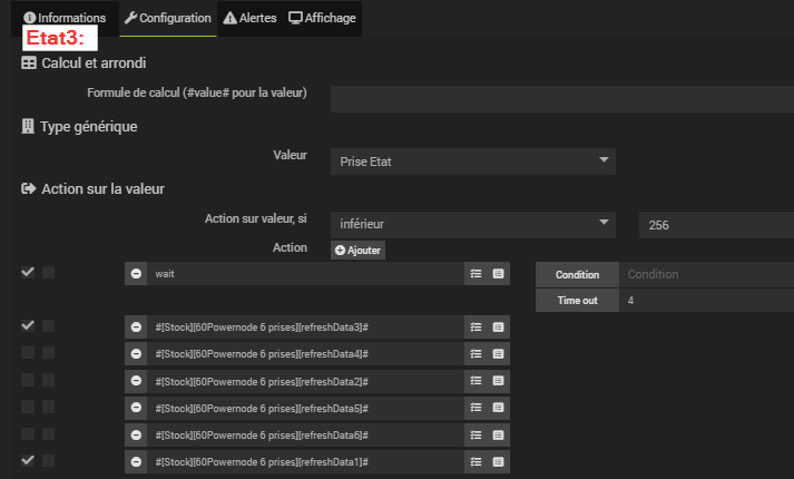 J’ai fait un scénario qui se déclenche sur l’évènement de la prise 1 et donc se refresh toutes les 10 sec