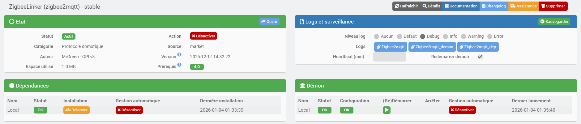 Pour les logs, lequel serait nécessaire ? ceux en debug dans la config Zigbeelinker ?