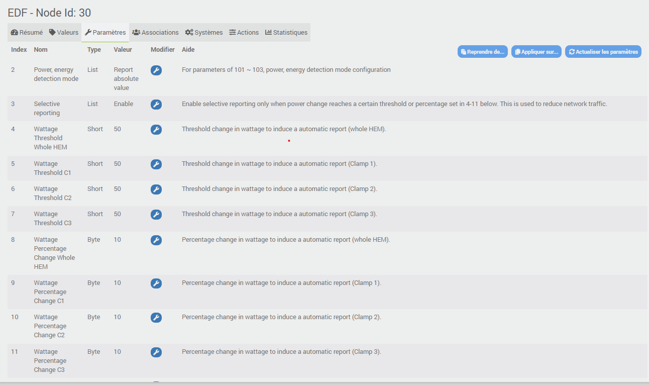 J’ai sorti mon module pour le réinclure, et je me suis souvenu qu’il fallait changer des paramètres dans les champs 101, et j’ai beau tester les valeurs que je lis dans les forum (14,15,64,…55xxx) rien n’y fait…