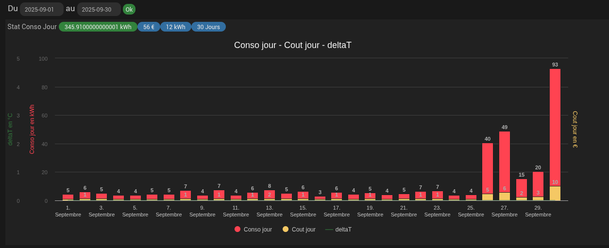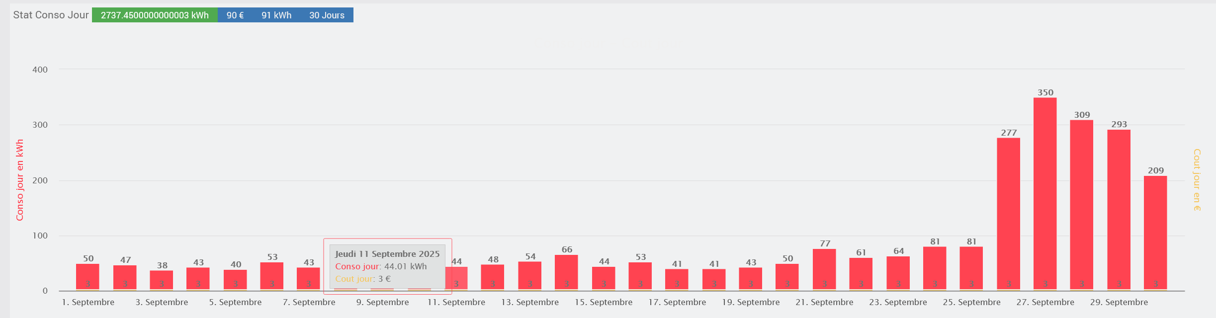 Cela pourrai être dû au décalage des données (J-4), car si le calcul porte sur la journée d’hier et que la consommation n’est pas encore remontée, alors 0 kWh est pris en compte, faussant le coût?