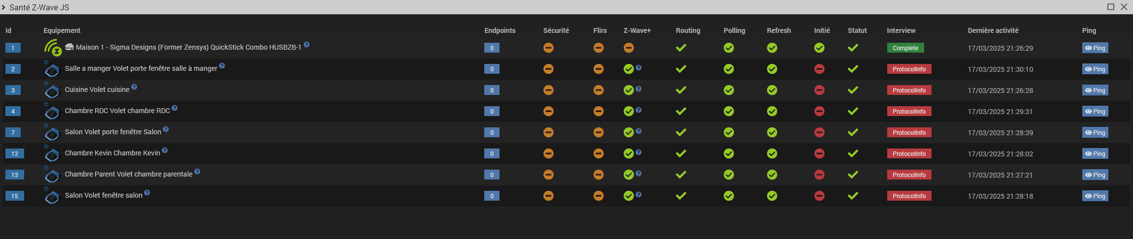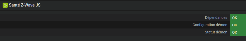 Voici la page de santé du Zwave