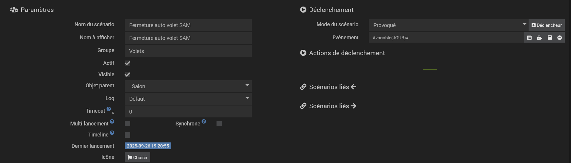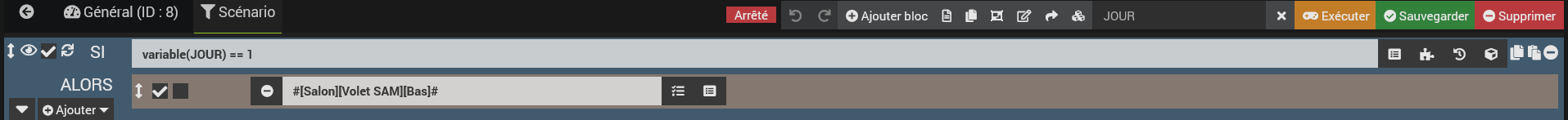 Pour terminer j’ai créé le scenario de fermeture du volet du salon en utilisant le scenario précédent