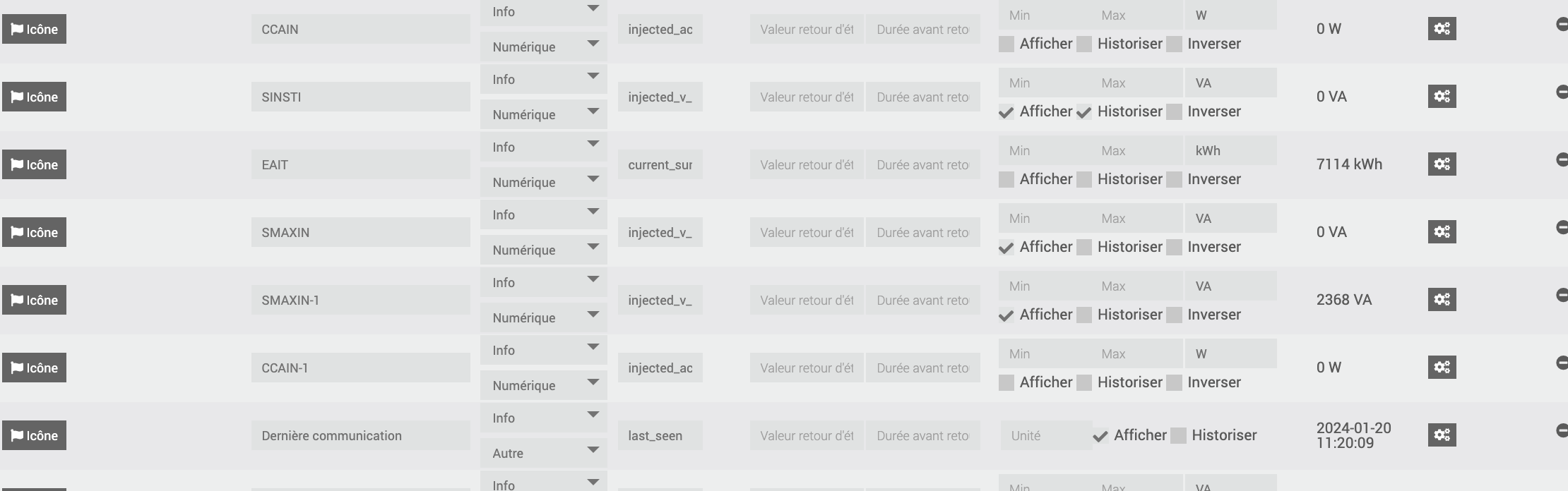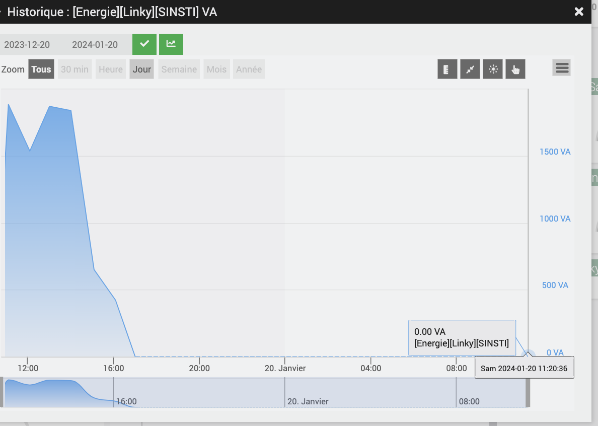 On s’aperçoit que malgré les interrogation toutes les minutes de Jeedom, il n’y a pas eu d’info renvoyées depuis la veille quand le SNSTI est devenu nul, la dernière info remontée date de la veille à 17h?