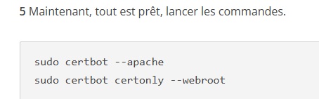 sudo certbot --apache et ca déroule le reste de la procédure! a quel moment je rentre la 2eme commande « sudo certbot certonly --webroot » ?