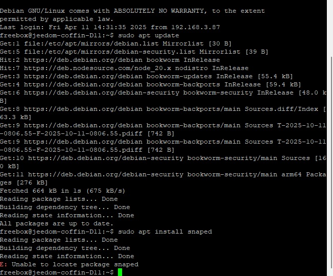 freebox@Jeedom-deb12:~$ sudo snap install core