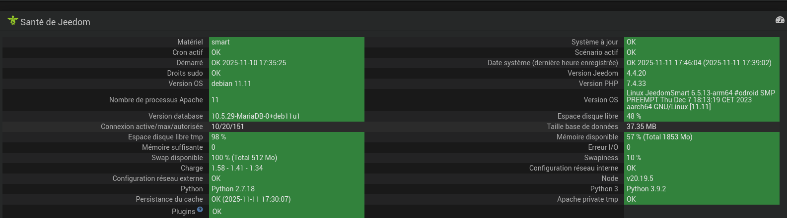 0255|[2025-11-11 17:50:17] e[32minfoe[39m: z2m:mqtt: MQTT publish: topic 'zigbee2mqtt/bridge/health', payload '{"response_time":1762879817746,"os":{"load_average":[1.35,1.33,1.32],"memory_used_mb":812.73,"memory_percent":43.8679},"process":{"uptime_sec":87009,"memory_used_mb":130.2,"memory_percent":7.0278},"mqtt":{"connected":true,"queued":0,"published":8124,"received":27},"devices":{"0x842e14fffefcd311":{"messages":2814,"messages_per_sec":0.0323,"leave_count":0,"network_address_changes":0},"0x00124b002518e811":{"messages":353,"messages_per_sec":0.0041,"leave_count":0,"network_address_changes":0},"0x540f57fffefc45e2":{"messages":673,"messages_per_sec":0.0077,"leave_count":0,"network_address_changes":0},"0xb4e3f9fffe27764d":{"messages":25,"messages_per_sec":0.0003,"leave_count":0,"network_address_changes":0},"0x00158d0005be990b":{"messages":1,"messages_per_sec":0.0007,"leave_count":0,"network_address_changes":0},"0xa4c1388cca45cd99":{"messages":16,"messages_per_sec":0.0119,"leave_count":0,"network_address_changes":0}}}'