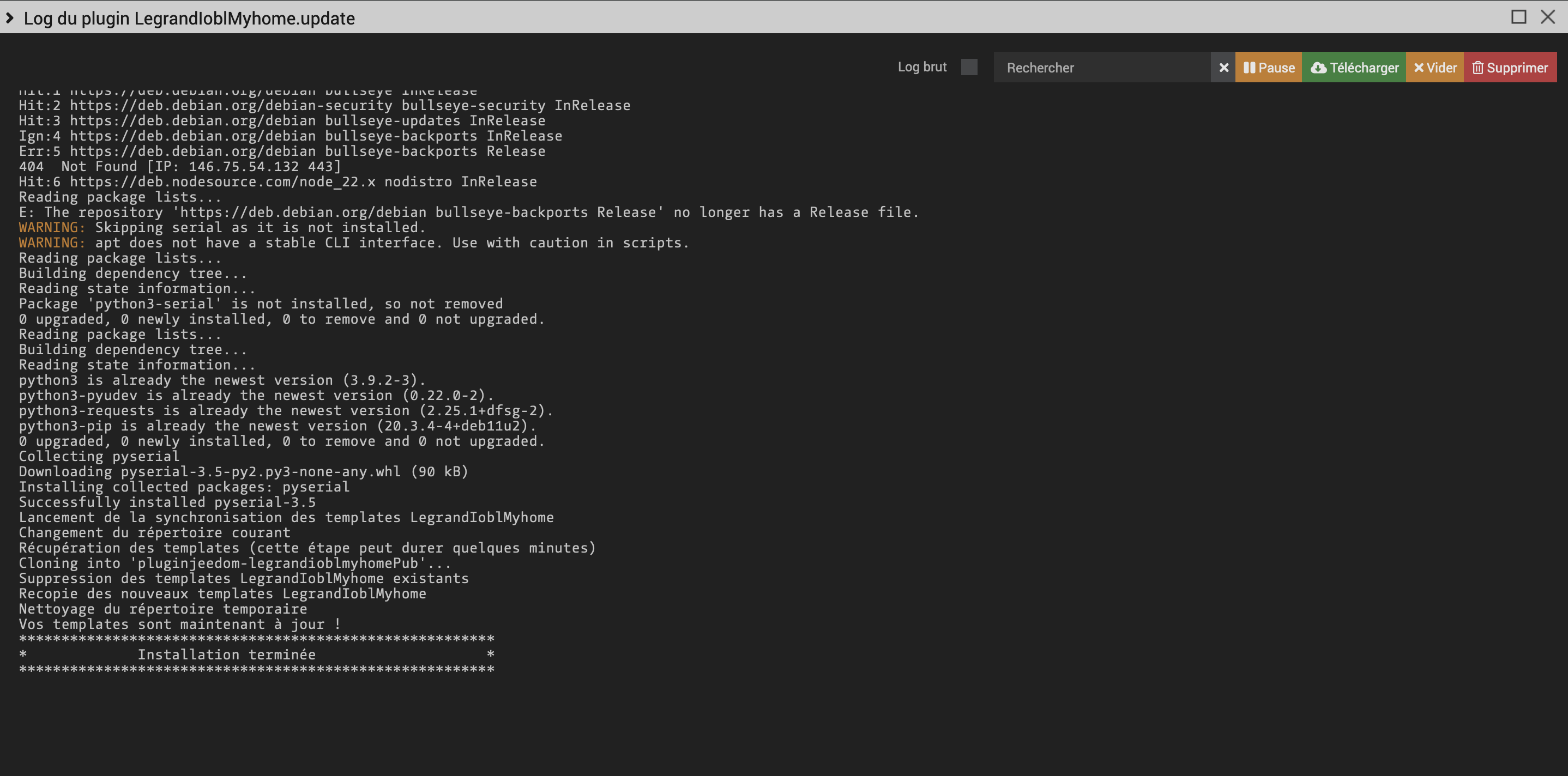 Vous avez mis une copie d’écran des logs d’installation.
