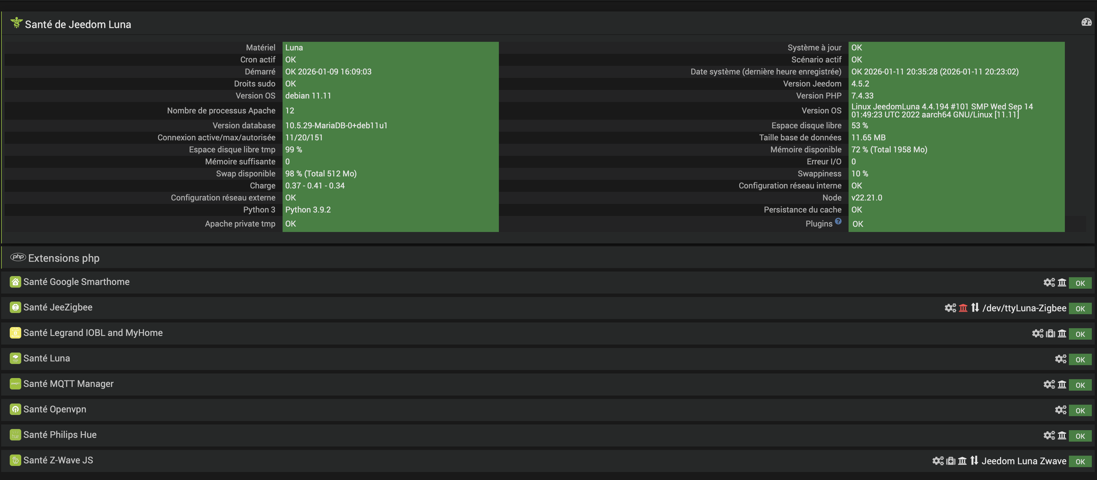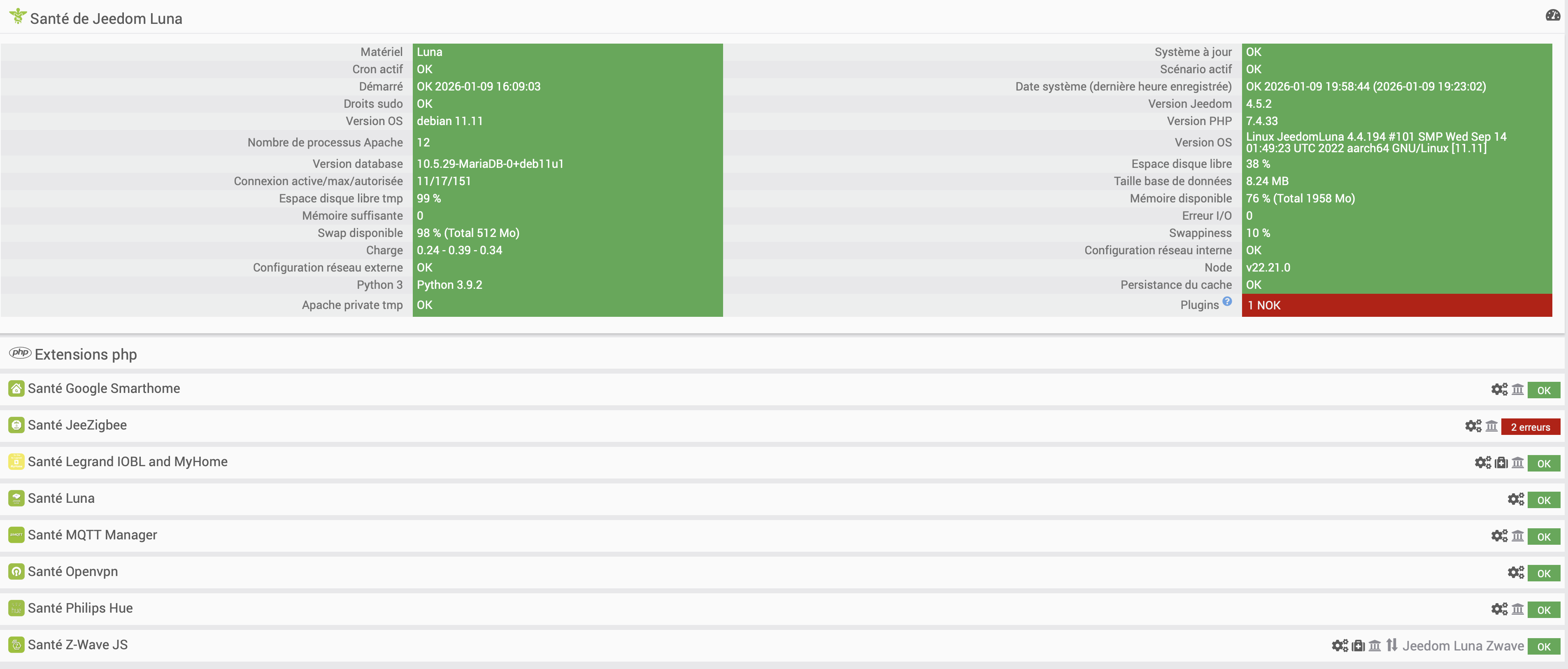 - Un screen de la page santé de ton jeedom.