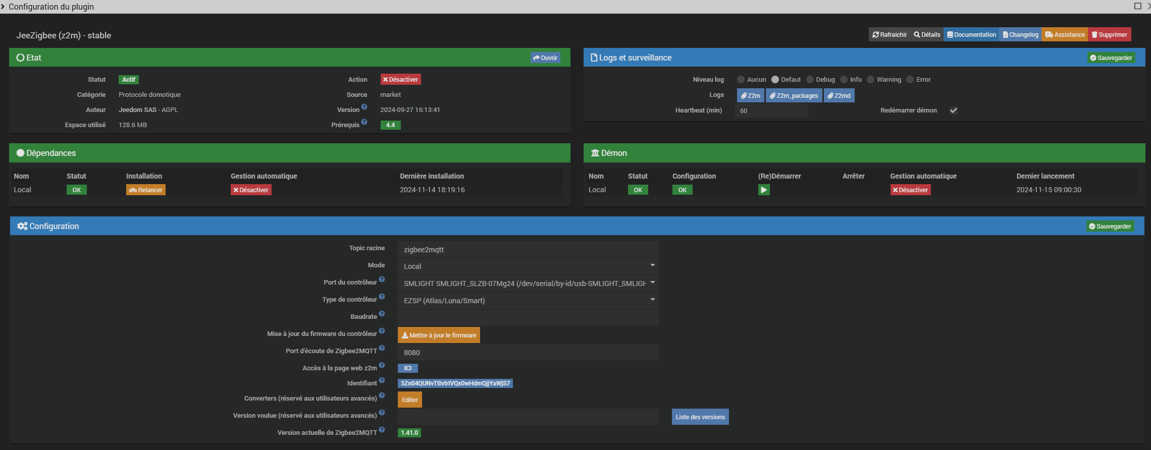 Sur jeedom depuis la mini, je bute cette fois ci pour utiliser la clef SMLIGHT - Dongle USB Zigbee EFR32MG24 en remplacement d’une zigate et j’ai besoin d’aide