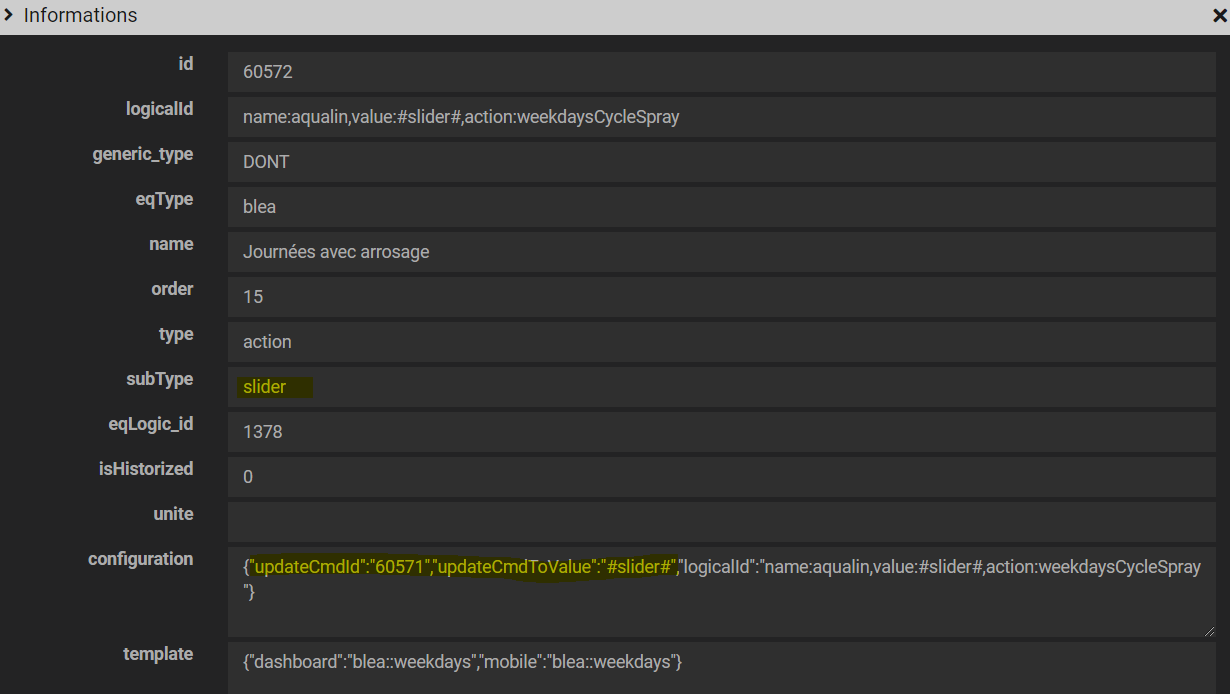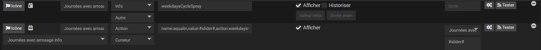 J’avais besoin d’une commande action qui renvoie une chaine de caractères « saisie par l’utilisateur » et qui soit liée à une commande info, c-à-d que cette commande info prenne la valeur de la commande et qu’inversement, quand la commande info à une valeur, le widget associé aux commandes actions puisse en tenir compte.
