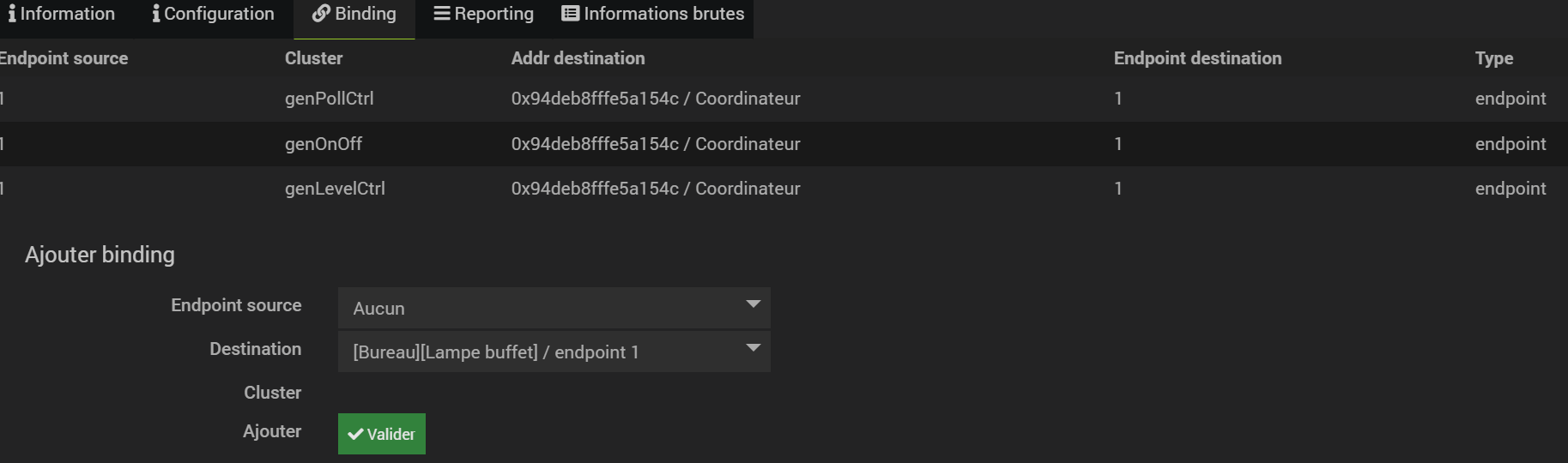 Si cela.ne fonctionne pas, voir la fiche zigbee2mqtt de ton ampoule et de ta télécommande. Il y a parfois des procédures particulières comme de faire le binding à un groupe obligatoirement, de retirer le coordinator, etc.