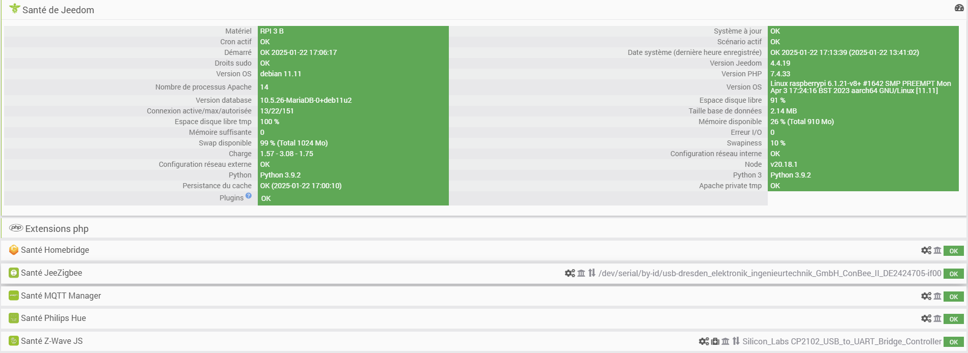 Je suis en Jeedom 4.4.19 sur une Debian 11.11 (page santé en PJ)