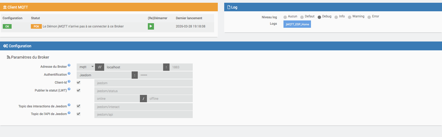 [2026-04-03 15:50:31,904] DEBUG JMsg.Snd SockOut send() : Sent TO Jeedom 2 messages handled in 39.284468ms (qToJ size 0): [{'cmd': 'messageIn', 'id': '64', 'topic': 'zigbee2mqtt/bridge/logging', 'payload': '{"level":"info","message":"z2m:mqtt: MQTT publish: topic \'zigbee2mqtt/0xa4c13814876e5858\', payload \'{\\"ac_frequency\\":49,\\"current_a\\":0,\\"current_b\\":5.257,\\"device\\":{\\"applicationVersion\\":74,\\"dateCode\\":\\"\\",\\"friendlyName\\":\\"0xa4c13814876e5858\\",\\"hardwareVersion\\":1,\\"ieeeAddr\\":\\"0xa4c13814876e5858\\",\\"manufacturerID\\":4417,\\"manufacturerName\\":\\"_TZE204_81yrt3lo\\",\\"model\\":\\"PJ-1203A\\",\\"networkAddress\\":19744,\\"powerSource\\":\\"Mains (single phase)\\",\\"stackVersion\\":0,\\"type\\":\\"Router\\",\\"zclVersion\\":3},\\"energy_a\\":0,\\"energy_b\\":5104.32,\\"energy_flow_a\\":\\"consuming\\",\\"energy_flow_b\\":\\"consuming\\",\\"energy_produced_a\\":345.86,\\"energy_produced_b\\":0,\\"last_seen\\":\\"2026-04-03T13:50:31.823Z\\",\\"linkquality\\":136,\\"power_a\\":0,\\"power_ab\\":1111.3,\\"power_b\\":1111.3,\\"power_factor_a\\":100,\\"power_factor_b\\":93,\\"timestamp_a\\":\\"2026-04-03T13:50:31.198Z\\",\\"timestamp_b\\":\\"2026-04-03T13:50:31.750Z\\",\\"update_frequency\\":10,\\"voltage\\":225.3}\'"}', 'qos': 0, 'retain': False}, {'cmd': 'messageIn', 'id': '64', 'topic': 'zigbee2mqtt/0xa4c13814876e5858', 'payload': '{"ac_frequency":49,"current_a":0,"current_b":5.257,"device":{"applicationVersion":74,"dateCode":"","friendlyName":"0xa4c13814876e5858","hardwareVersion":1,"ieeeAddr":"0xa4c13814876e5858","manufacturerID":4417,"manufacturerName":"_TZE204_81yrt3lo","model":"PJ-1203A","networkAddress":19744,"powerSource":"Mains (single phase)","stackVersion":0,"type":"Router","zclVersion":3},"energy_a":0,"energy_b":5104.32,"energy_flow_a":"consuming","energy_flow_b":"consuming","energy_produced_a":345.86,"energy_produced_b":0,"last_seen":"2026-04-03T13:50:31.823Z","linkquality":136,"power_a":0,"power_ab":1111.3,"power_b":1111.3,"power_factor_a":100,"power_factor_b":93,"timestamp_a":"2026-04-03T13:50:31.198Z","timestamp_b":"2026-04-03T13:50:31.750Z","update_frequency":10,"voltage":225.3}', 'qos': 0, 'retain': False}]