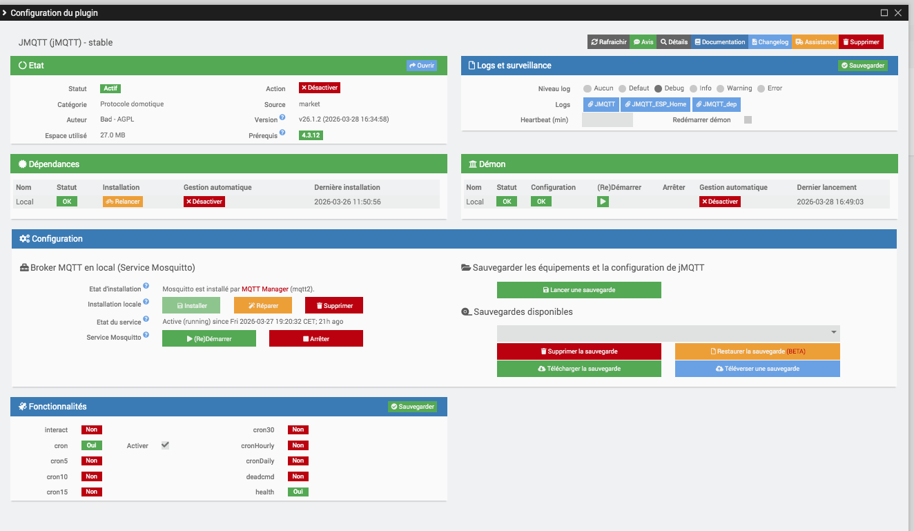 [2026-04-03 15:50:34,720] DEBUG JMsg.Snd SockOut send() : Sent TO Jeedom 2 messages handled in 100.630283ms (qToJ size 2): [{'cmd': 'messageIn', 'id': '64', 'topic': 'zigbee2mqtt/bridge/logging', 'payload': '{"level":"info","message":"z2m:mqtt: MQTT publish: topic \'zigbee2mqtt/0xa4c13814876e5858\', payload \'{\\"ac_frequency\\":49,\\"current_a\\":0,\\"current_b\\":5.257,\\"device\\":{\\"applicationVersion\\":74,\\"dateCode\\":\\"\\",\\"friendlyName\\":\\"0xa4c13814876e5858\\",\\"hardwareVersion\\":1,\\"ieeeAddr\\":\\"0xa4c13814876e5858\\",\\"manufacturerID\\":4417,\\"manufacturerName\\":\\"_TZE204_81yrt3lo\\",\\"model\\":\\"PJ-1203A\\",\\"networkAddress\\":19744,\\"powerSource\\":\\"Mains (single phase)\\",\\"stackVersion\\":0,\\"type\\":\\"Router\\",\\"zclVersion\\":3},\\"energy_a\\":0,\\"energy_b\\":5104.32,\\"energy_flow_a\\":\\"consuming\\",\\"energy_flow_b\\":\\"consuming\\",\\"energy_produced_a\\":345.86,\\"energy_produced_b\\":0,\\"last_seen\\":\\"2026-04-03T13:50:34.534Z\\",\\"linkquality\\":132,\\"power_a\\":0,\\"power_ab\\":1111.3,\\"power_b\\":1111.3,\\"power_factor_a\\":100,\\"power_factor_b\\":93,\\"timestamp_a\\":\\"2026-04-03T13:50:31.198Z\\",\\"timestamp_b\\":\\"2026-04-03T13:50:31.750Z\\",\\"update_frequency\\":10,\\"voltage\\":225.3}\'"}', 'qos': 0, 'retain': False}, {'cmd': 'messageIn', 'id': '64', 'topic': 'zigbee2mqtt/0xa4c13814876e5858', 'payload': '{"ac_frequency":49,"current_a":0,"current_b":5.257,"device":{"applicationVersion":74,"dateCode":"","friendlyName":"0xa4c13814876e5858","hardwareVersion":1,"ieeeAddr":"0xa4c13814876e5858","manufacturerID":4417,"manufacturerName":"_TZE204_81yrt3lo","model":"PJ-1203A","networkAddress":19744,"powerSource":"Mains (single phase)","stackVersion":0,"type":"Router","zclVersion":3},"energy_a":0,"energy_b":5104.32,"energy_flow_a":"consuming","energy_flow_b":"consuming","energy_produced_a":345.86,"energy_produced_b":0,"last_seen":"2026-04-03T13:50:34.534Z","linkquality":132,"power_a":0,"power_ab":1111.3,"power_b":1111.3,"power_factor_a":100,"power_factor_b":93,"timestamp_a":"2026-04-03T13:50:31.198Z","timestamp_b":"2026-04-03T13:50:31.750Z","update_frequency":10,"voltage":225.3}', 'qos': 0, 'retain': False}]
