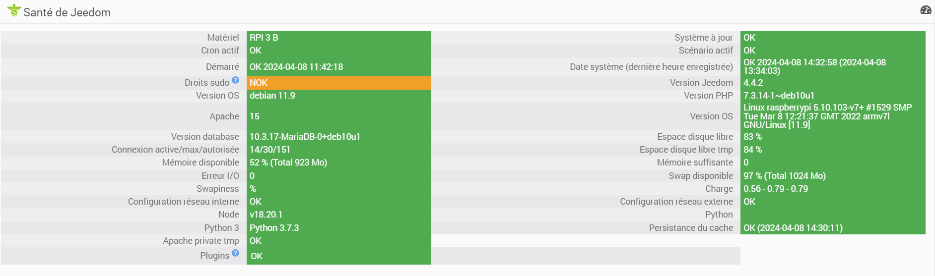 Santé Jeedom:
