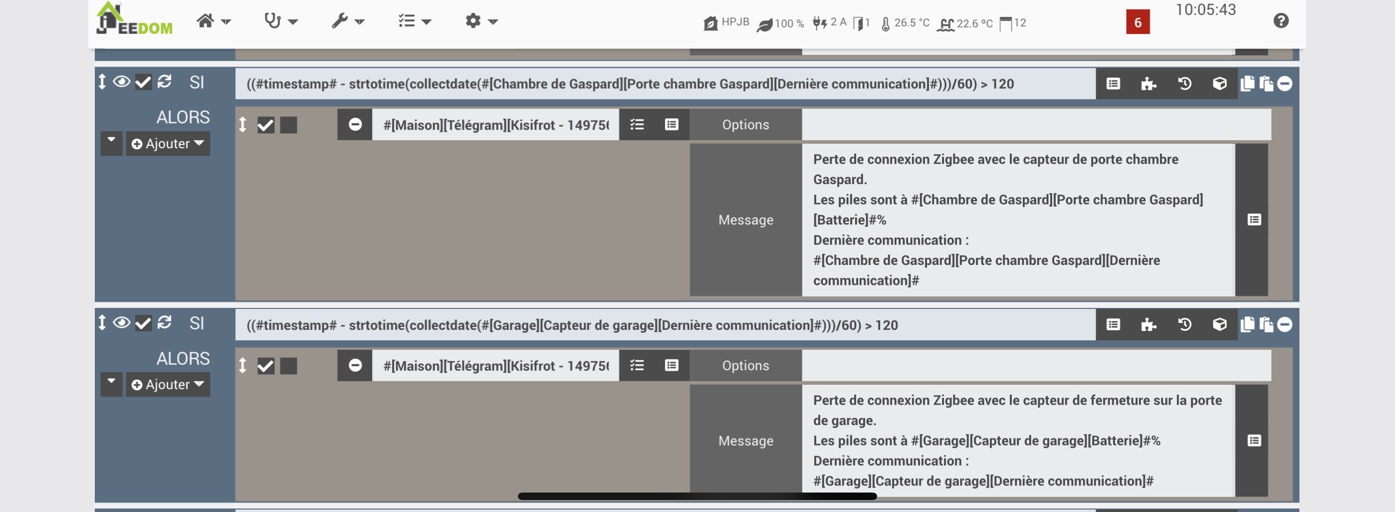 sous jeezigbee ou zigbee2mqtt quand on pert un module que se sois sonde ou autre , existe il un moyen de surveillance par scenario pour etre prevenu?