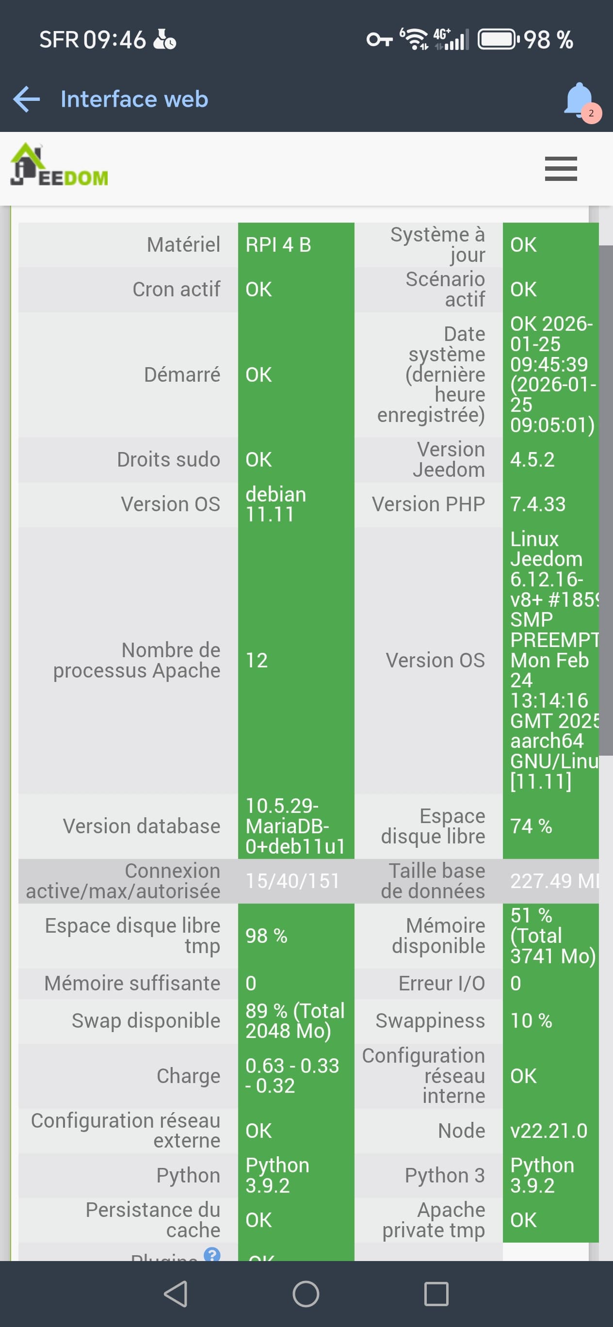 J ai un raspberry 4b sur ssd jeedom 4.5.2