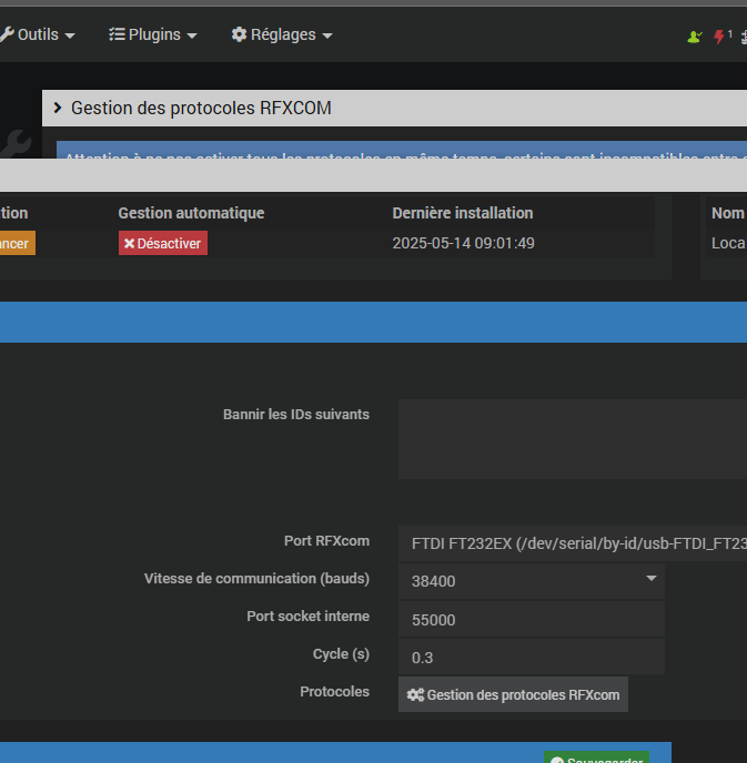 helloo juste pour signaler un petit bug avec la version beta 4.4 de jeedom et le plugin rfxcom en beta également: